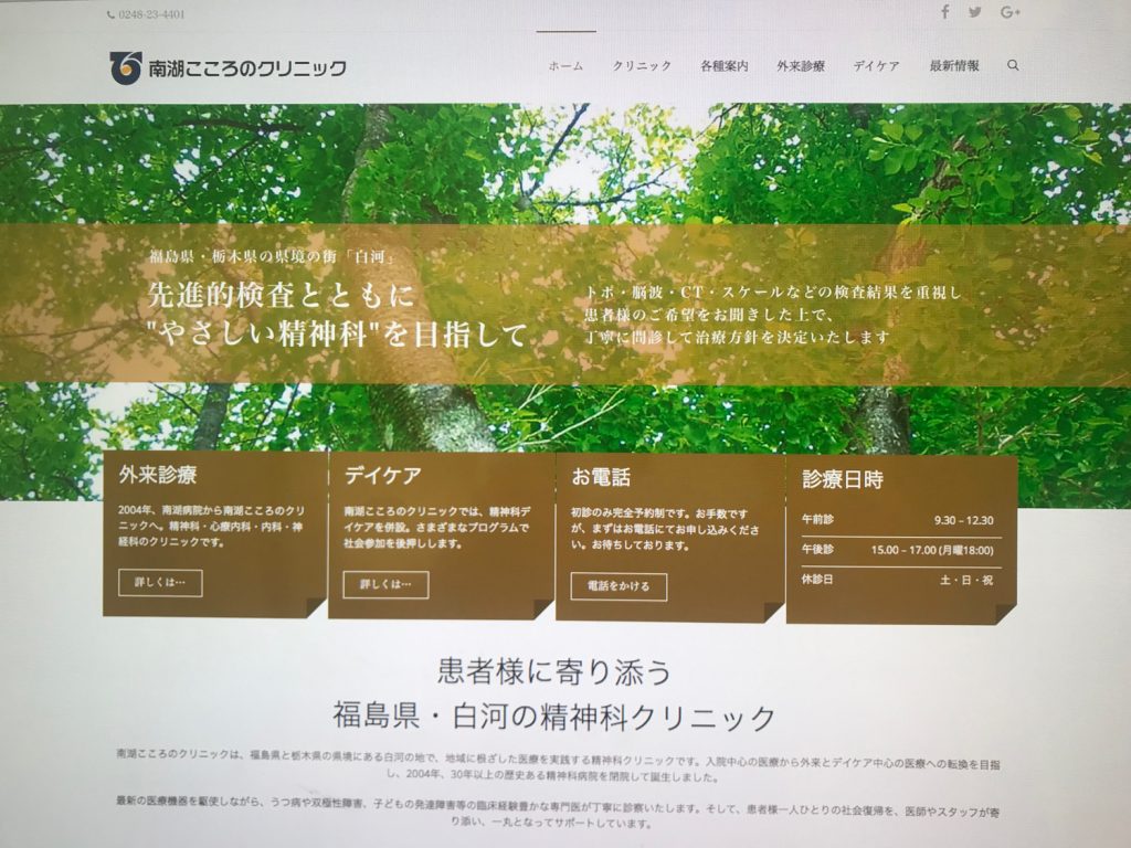 ホームページを開設いたしました support 8年前 この度、南湖こころのクリニックのホームページを開設させていただきました。今後は外来診療においてもデイケアにおいても、これから新規コンテンツや記事を追記してまいりますので、今後ともクリニック共々、HPも宜しくお願い申し上げます。 南湖こころのクリニック公式サイト 南湖こころのクリニック公式HP公開しました