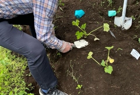 6月は二日間に渡り、園芸プログラムとして、野菜の苗を植えました。敷地内の畑を耕して、さつまいも、なす、ピーマン、ズッキーニ、ミニトマトの苗を植えました。