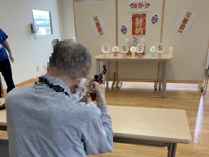 8月17日(水)に小さな「夏祭り」を行いました。ジュースやかき氷、射的ゲームなどの屋台を設けました。その中でも射的の屋台は、大人気☆大いに盛り上がりました。
