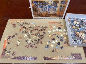 手工芸のプログラムにおいて、秋冬をテーマにした「ジグソーパズル」の作成が始まりました。ジグソーパズルは、人気がある活動プログラムのひとつです。パズルに取り組むことで記憶力や集中力、ストレスを和らげる効果などがあげられます。いろいろな難易度のパズルを揃えていますので、是非チャレンジしてください。