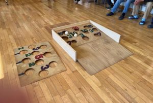 ※スカットボールとは、パターゴルフのようにボールを打って、入った穴に書かれた点数の合計を競うスティックゲームです。