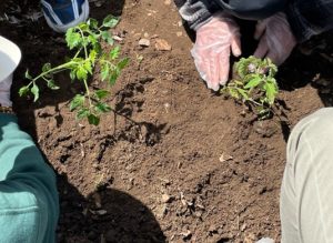 枝豆、ナス、ミニトマト、イチゴの苗をみんなで協力して、バランスよく植えました。これから、大きく育つのが本当に楽しみですね!