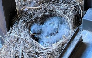 フロアの窓枠に小鳥(ハクセキレイ)が巣を作り、なんとヒナが誕生いたしました☆