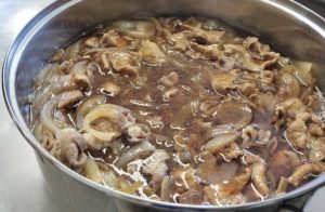 当初は焼き肉の予定でしたが、豚肉と玉ねぎの煮込み料理に変更。みなさんからは、「味がしっかりと染み込んでいてとっても美味しいねぇ☆」「煮込んでいるからお肉が柔らかいね♪」とたくさんの笑顔が溢れ大好評でした。皆さんもお肉パワーで、ジメジメした季節を乗り越えましょう!