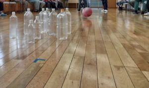 9月18日のレクリエーションプログラムで、ボーリングを行いました。ペットボトルをピンに見立てて、ボールを転がします。ルールは、一人3回投球し合計点で競う個人戦。25名を超える参加者があり、大いに盛り上がりました☆