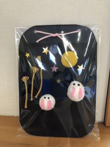 9月11日は、外部講師の方にご指導をいただく「手芸のプログラム」で貼り絵を行いました。今回のテーマは「お月見」。うさぎやお月様、星の手芸品を作製し、台紙にバランスよく貼り付けたらでき上がりです。皆さん、完成した作品を笑顔で見せ合うことで、芸術の秋を楽しみながら、コミュニケーションを深めていました♪