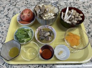「調理」プログラムでは、イワシときのこの和風スープパスタ・トマトのひき肉詰め・みかん牛乳寒天を作りました。今回は、自分で食べる分は、自分で作る、分量を考えたスタイルでの調理です。皆さん、調理の工程も上手に、お味も美味しく、作り上げることが出来ました☆
