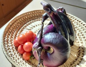 5月の園芸プログラムで種まきから始まったナスが、ついに大きく実りました!「ここまで育ってくれて感動☆」「形はいびつでも立派なナスだね☆」と、皆さん喜びでいっぱいです。さつまいもの苗もこの暑さでグングン成長しています。こちらも秋の収穫を想像するだけで、笑顔になってしまうくらい、今から楽しみです