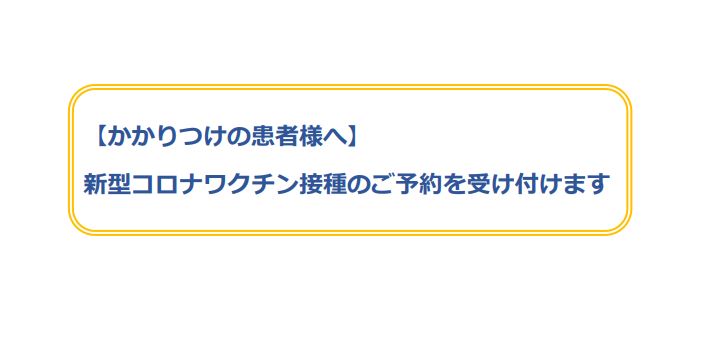 ※受付またはお電話口では「コロナワクチン接種の予約です」とお伝えください。